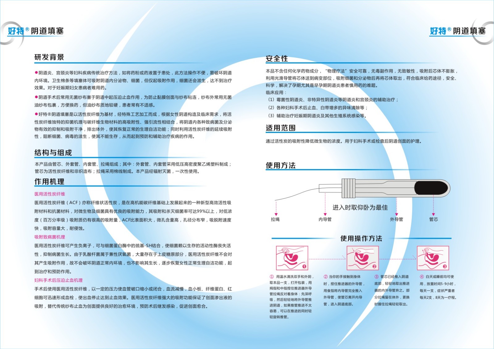 適用范圍:通過活性炭的吸附性降低微生物的濃度。用于婦科手術或檢查后陰道創面的護理。